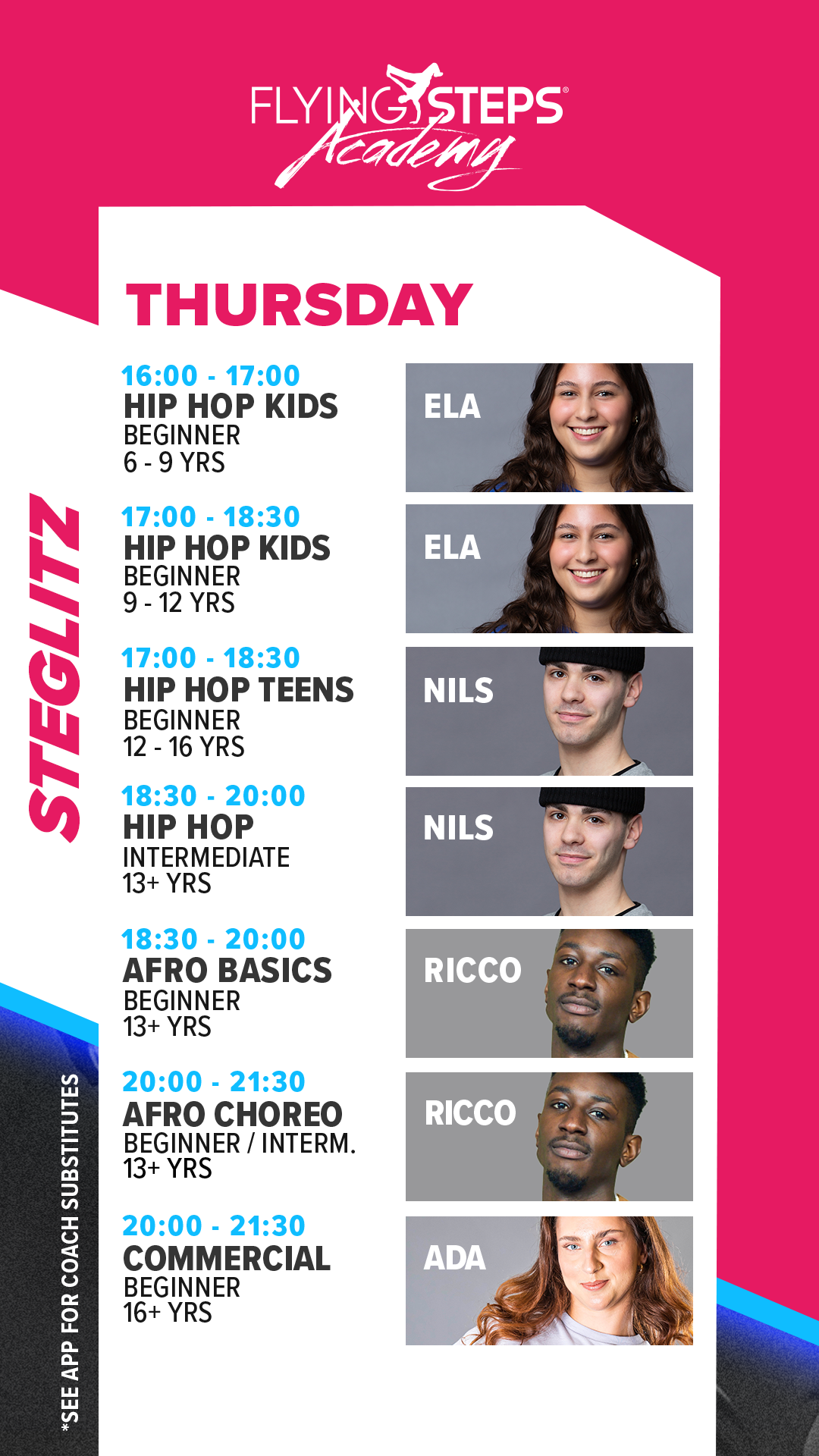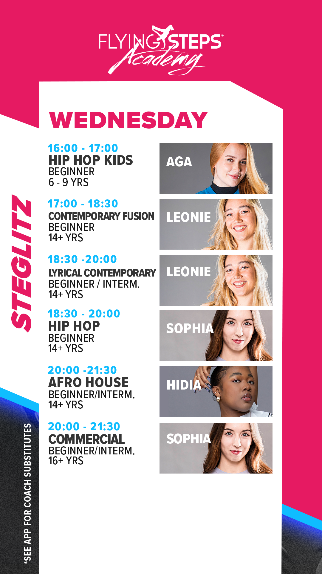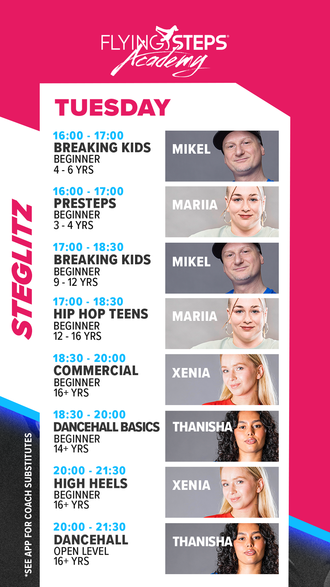Kontakt E-Mail: fsa-steglitz@flyingsteps.com Telefon: 030 40006189 Öffnungszeiten Montag - Freitag: 10:00 - 21:30 Uhr Samstag: 11:30 - 17:00 Uhr