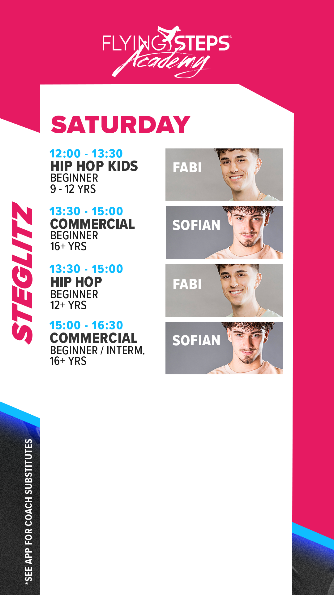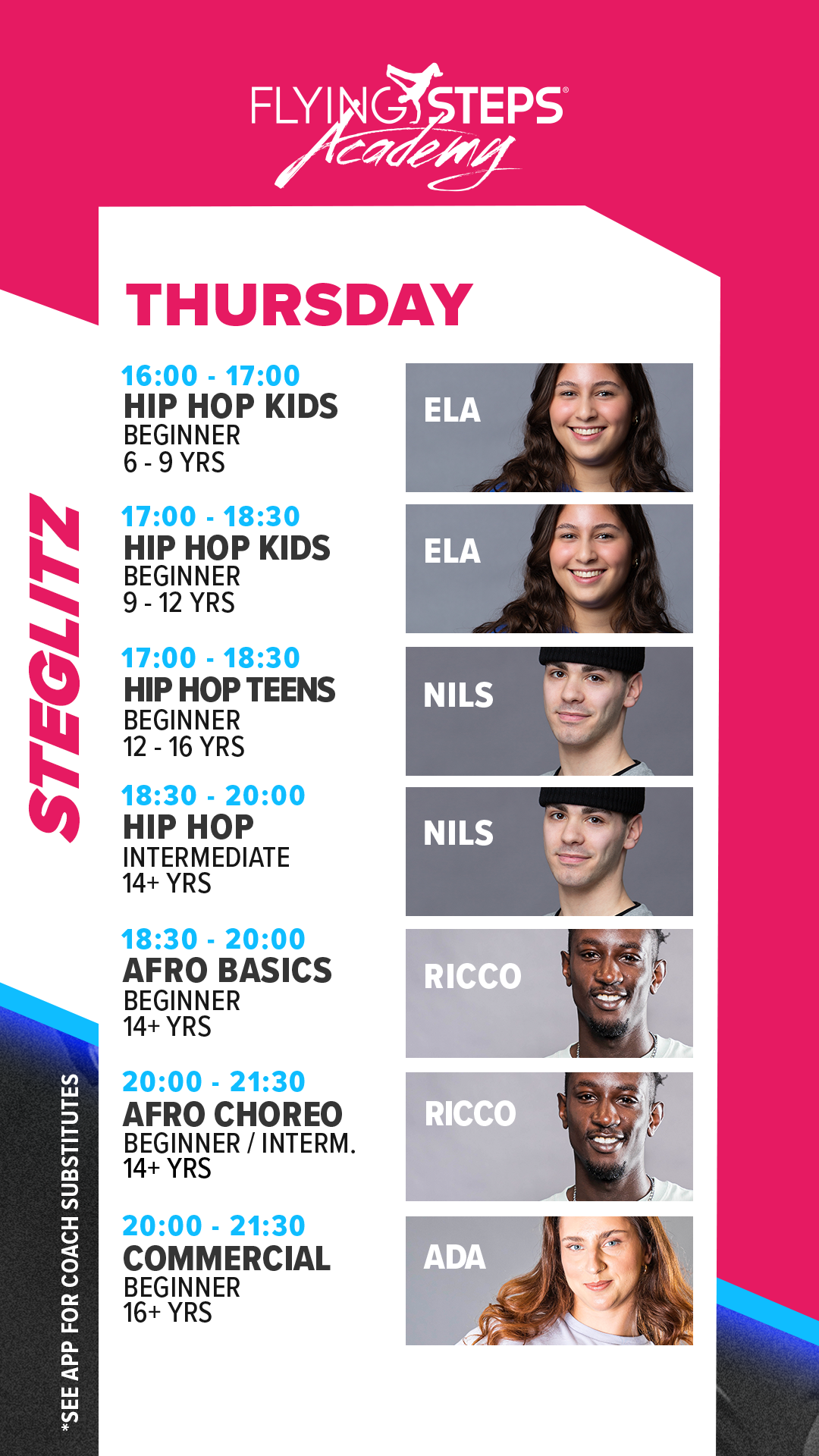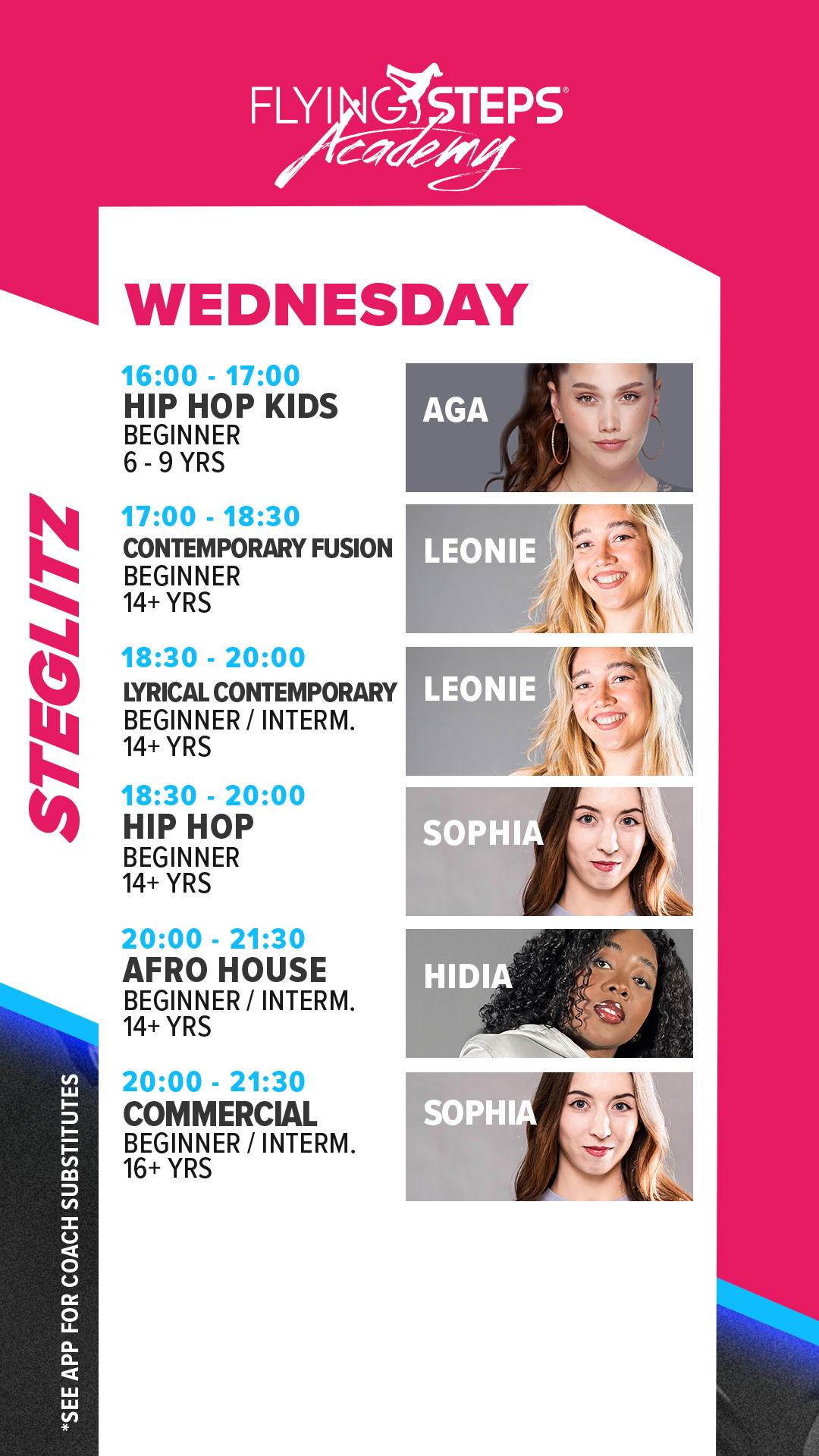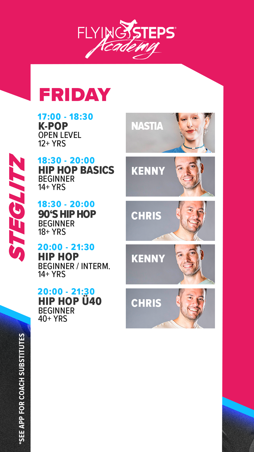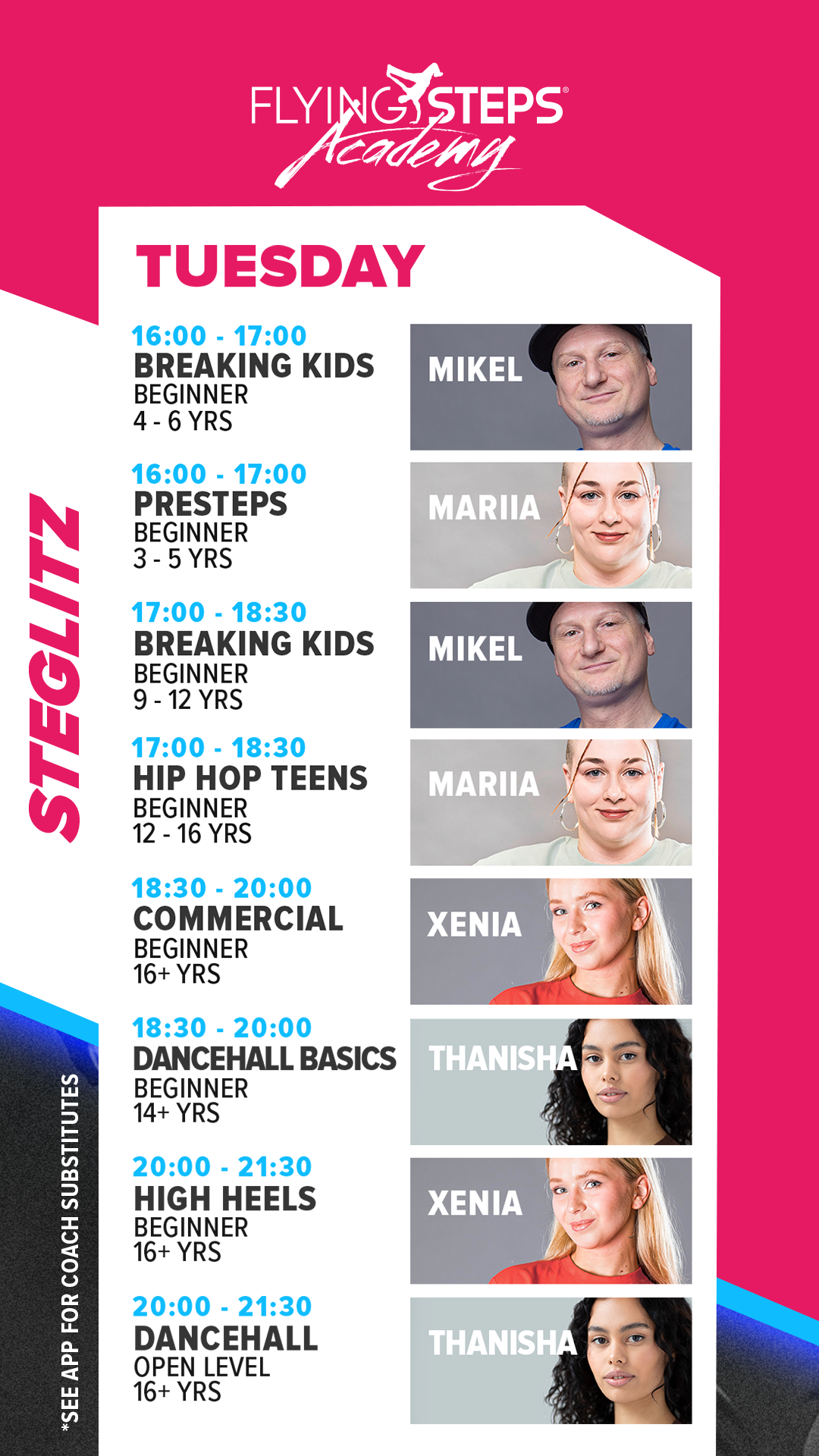 Kontakt: fsa-steglitz@flyingsteps.com Öffnungszeiten Montag - Freitag: 10:00 - 21:30 Uhr Samstag: 11:30 - 17:00 Uhr
